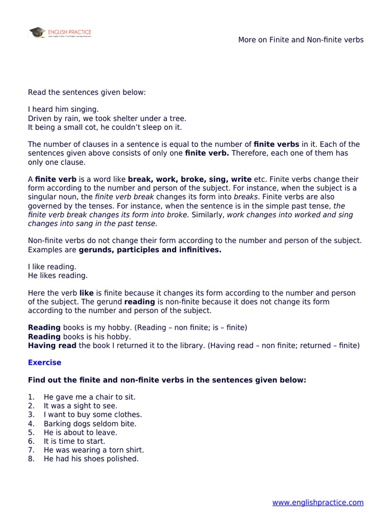 A nite verb is a word like break, work, broke, sing, write etc. Finite verbs change their
