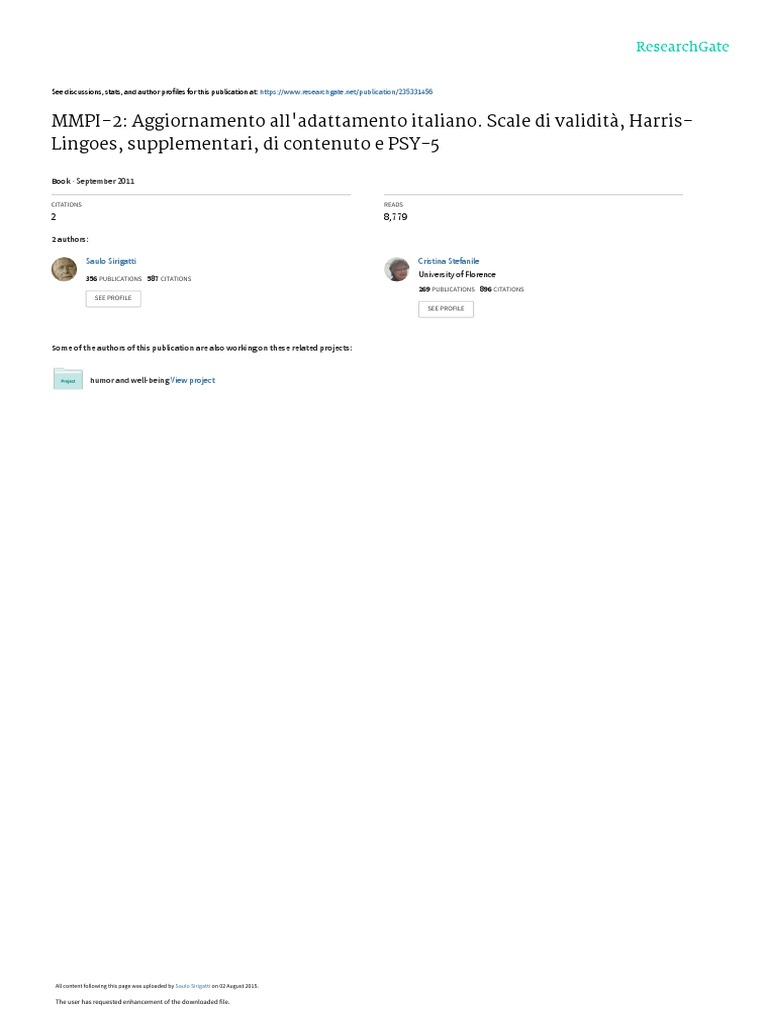 Sirigatti, S., & Stefanile, C. (2011). MMPI-2: Aggiornamento all’adattamento italiano. Scale di validità, Harris-Lingoes,