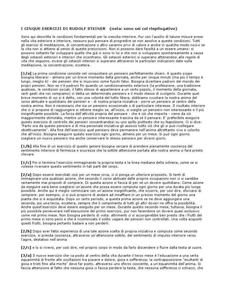 I CINQUE ESERCIZI DI RUDOLF STEINER (nota: sono sei col riepilogativo)