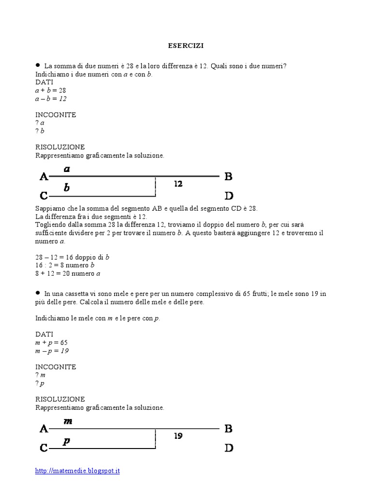 Togliendo dalla somma 28 la differenza 12, troviamo il doppio del numero b, per cui sarà