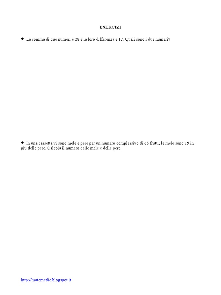 • In una cassetta vi sono mele e pere per un numero complessivo di 65 frutti; le mele sono 19 in