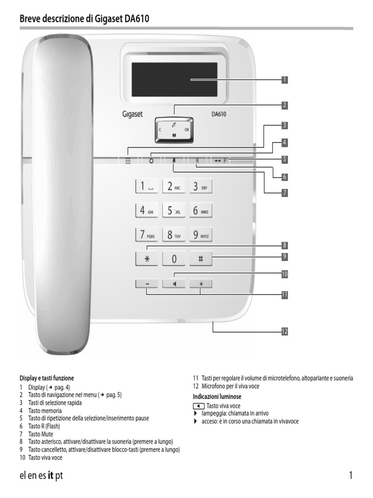 volume altoparlante . . . . . . . . . . . . . . . . . . . . . . . . . . . . . . . . . . . . . . . . . . . . . . 7 ripetizione selezione/pausa . . . . . . . . . . . . . . . . . . . . . . . . . . . . . . . . . . . . . . 1