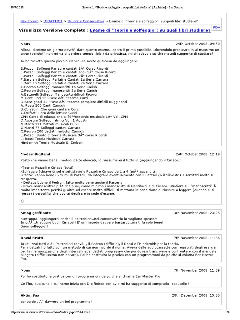30/9/2018 Esame di "Teoria e solfeggio": su quali libri studiare? [Archivio] - Sax Forum