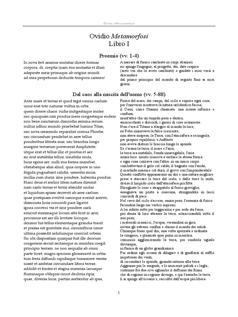 In nova fert animus mutatas dicere formas A narrare di forme cambiate in corpi stranieri
