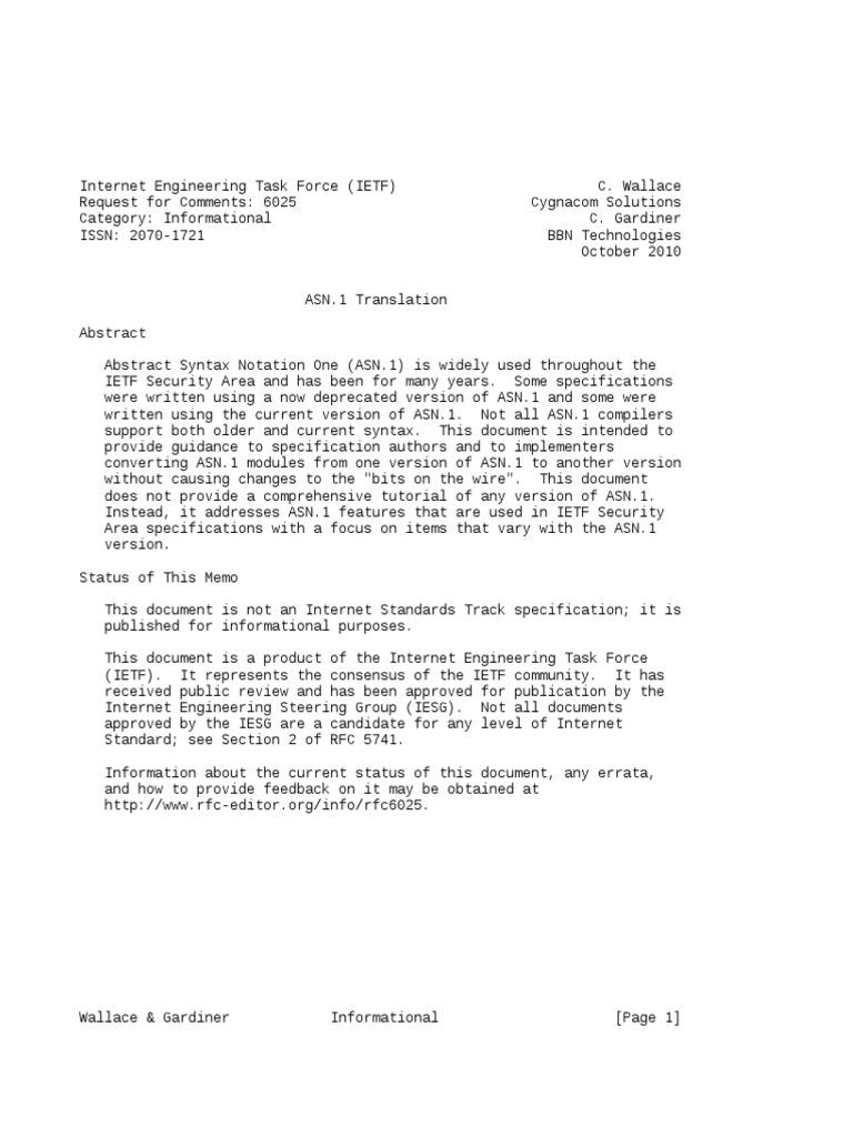 RFC 6025 ASN.1 Translation October 2010