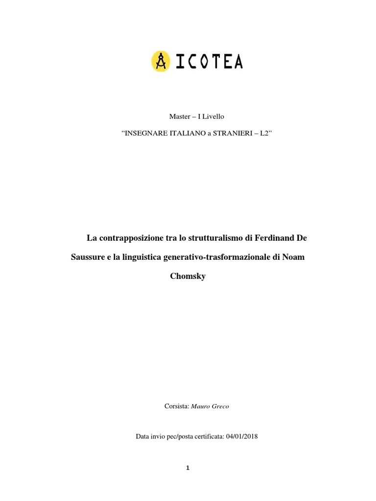 Saussure e la linguistica generativo-trasformazionale di Noam