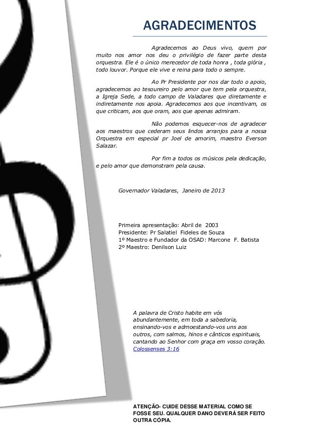 AGRADECIMENTOS ATENÇÃO- CUIDE DESSE MATERIAL COMO SE FOSSE SEU. QUALQUER DANO DEVERÁ SER FEITO OUTRA CÓPIA. Agradecemos ao