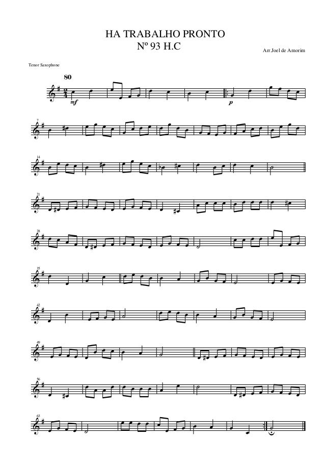 Arranged by Joel de AmorimTenor Sax.