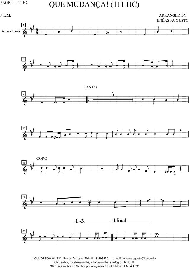 Tenor Sax. Arranged by Everson Salazar