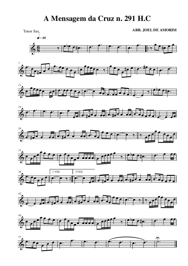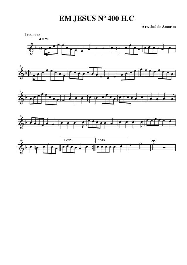 19 œ œn œ œ œ œ 1 VEZ œ œ œ œ œ œ 2 VEZ œ œ œ œ œ œ ˙ ˙ ˙U Ó EM JESUS Nº 400 H.C Arr. Joel de Amorim Tenor Sax.