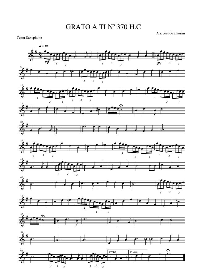 œœœ 3 œœœ 3 œœœ 1ª VEZ œ œ œ 2ª VEZ œ œ œ ˙ œ .˙U GRATO A TI Nº 370 H.C Arr. Joel de amorim Tenor Saxophone