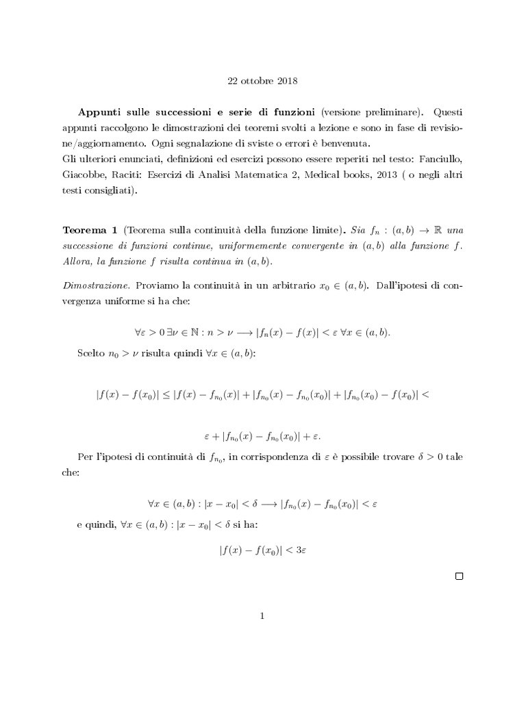 Scelto n0 > ν risulta quindi ∀x ∈ (a, b):