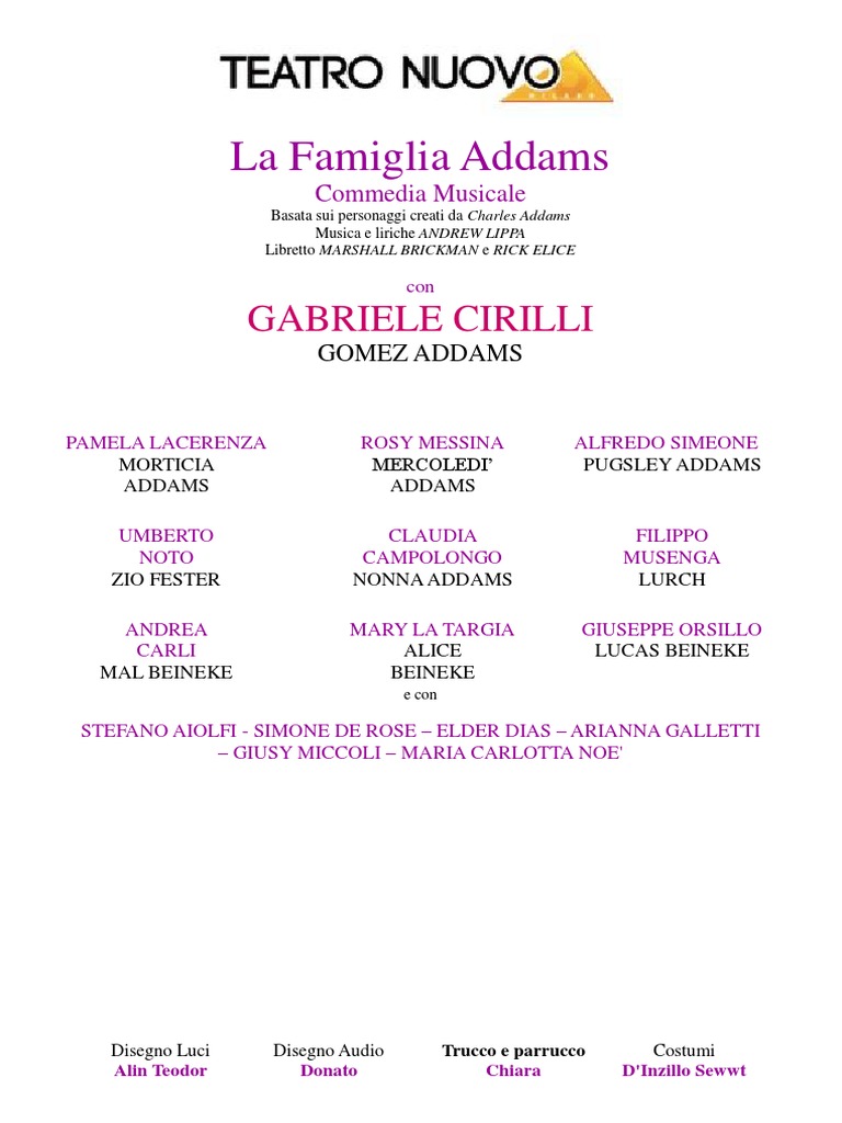 Teatro Nuovo di Milano, La Famiglia Addams. I personaggi creati da