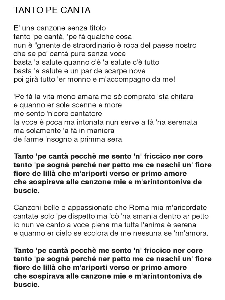 cantate solo 'pe dispetto ma 'cò 'na smania dentro ar petto