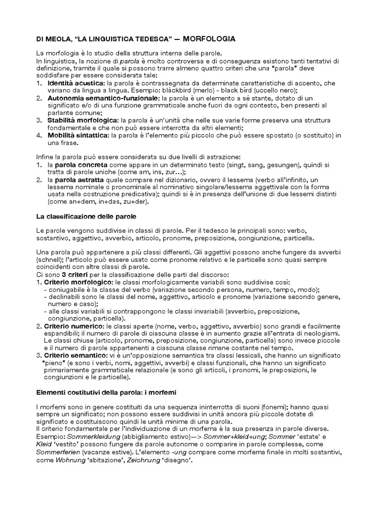 DI MEOLA, “LA LINGUISTICA TEDESCA” — MORFOLOGIA