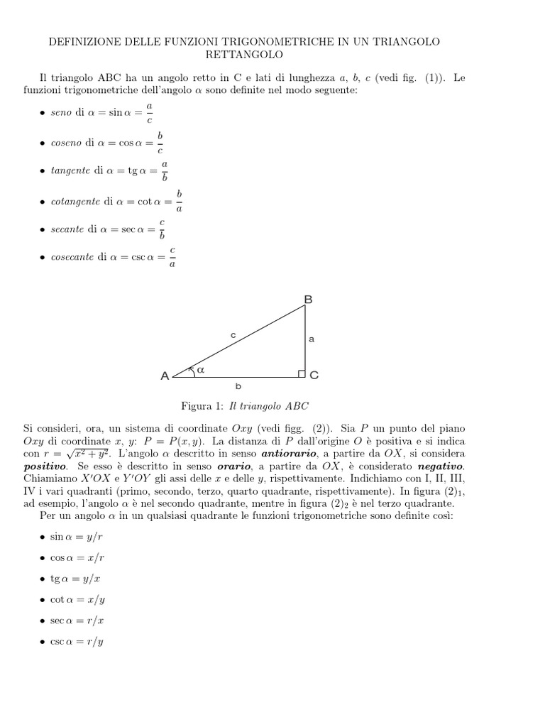 Per un angolo α in un qualsiasi quadrante le funzioni trigonometriche sono definite cosı̀: