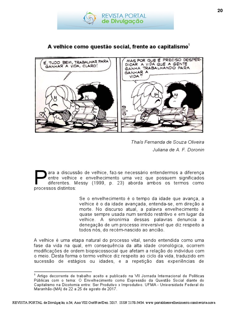 REVISTA PORTAL de Divulgação, n.54, Ano VIII Out/Nov/Dez. 2017. ISSN 2178-3454. www.portaldoenvelhecimento.com/revista-nova