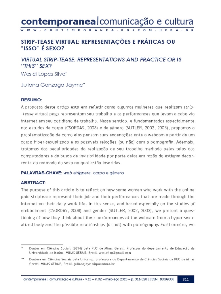 -tease on-line, as web strippers. O objetivo daquela etnografia era compreender a ciais em acordo com uma versão específica de feminilidade. Ostensivamente pensadas