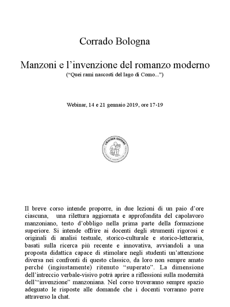 dell’“invenzione” manzoniana. Nel corso troveranno sempre spazio