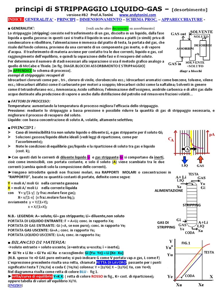 N.B.- LEGENDA: A= soluto; Gi= gas strippante; Li= diluente,non soluto