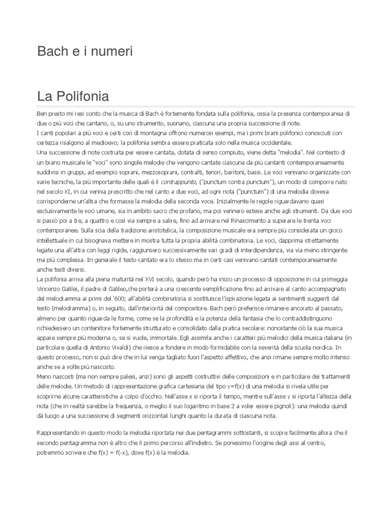 Ben presto mi resi conto che la musica di Bach è fortemente fondata sulla polifonia, ossia la presenza contemporanea di