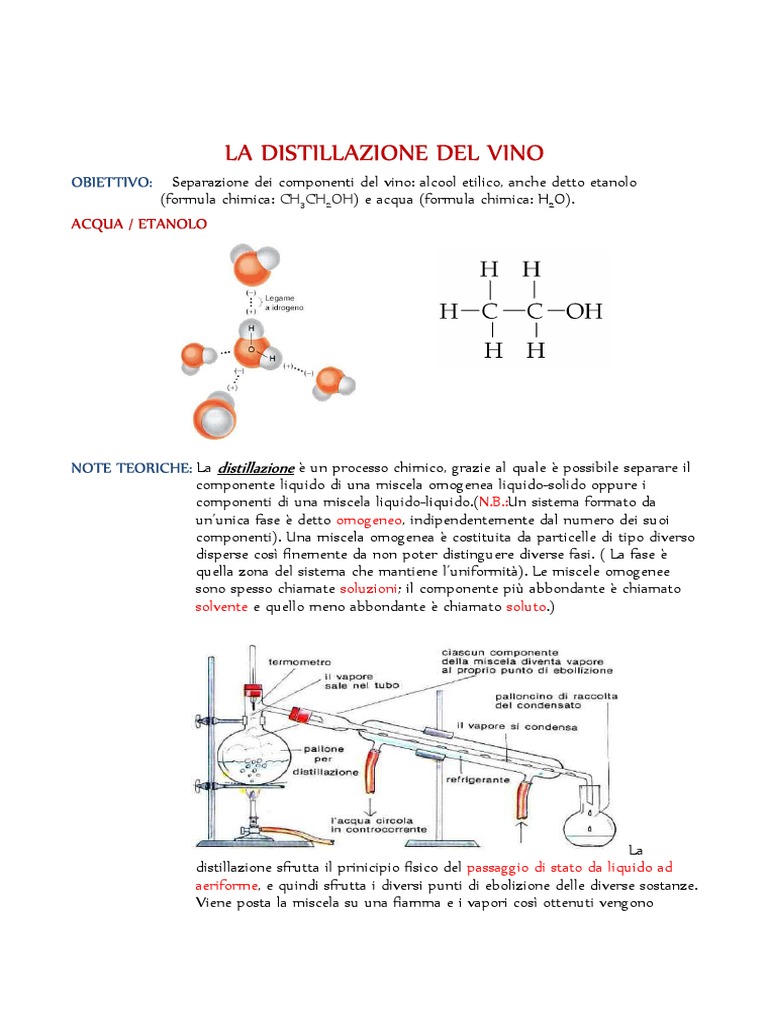 NOTE TEORICHE: La distillazione è un processo chimico, grazie al quale è possibile separare il