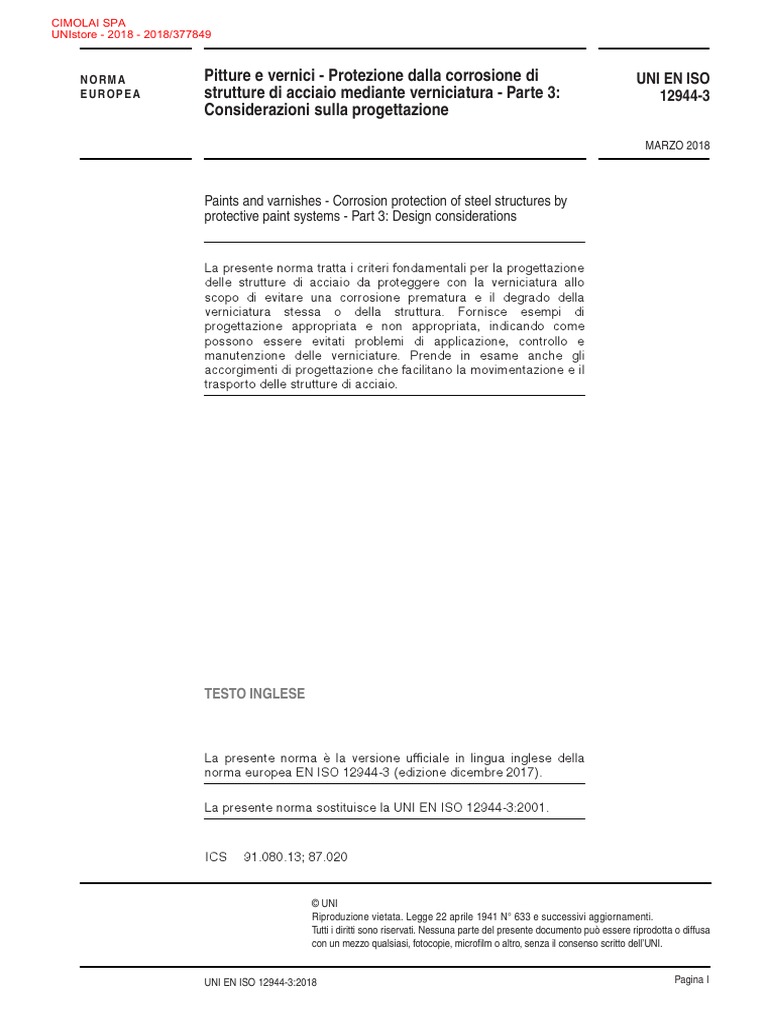 della norma europea EN ISO 12944-3 (edizione dicembre 2017),
