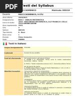 1 semestre Calcolo Numerico 1 9 MAT/08 33 ore Esercitazioni,