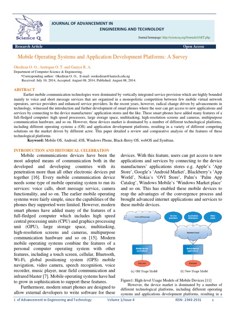 Citation: Okediran O. O. et al (2014) Mobile Operating Systems and Application Development Platforms: A Survey. J. of