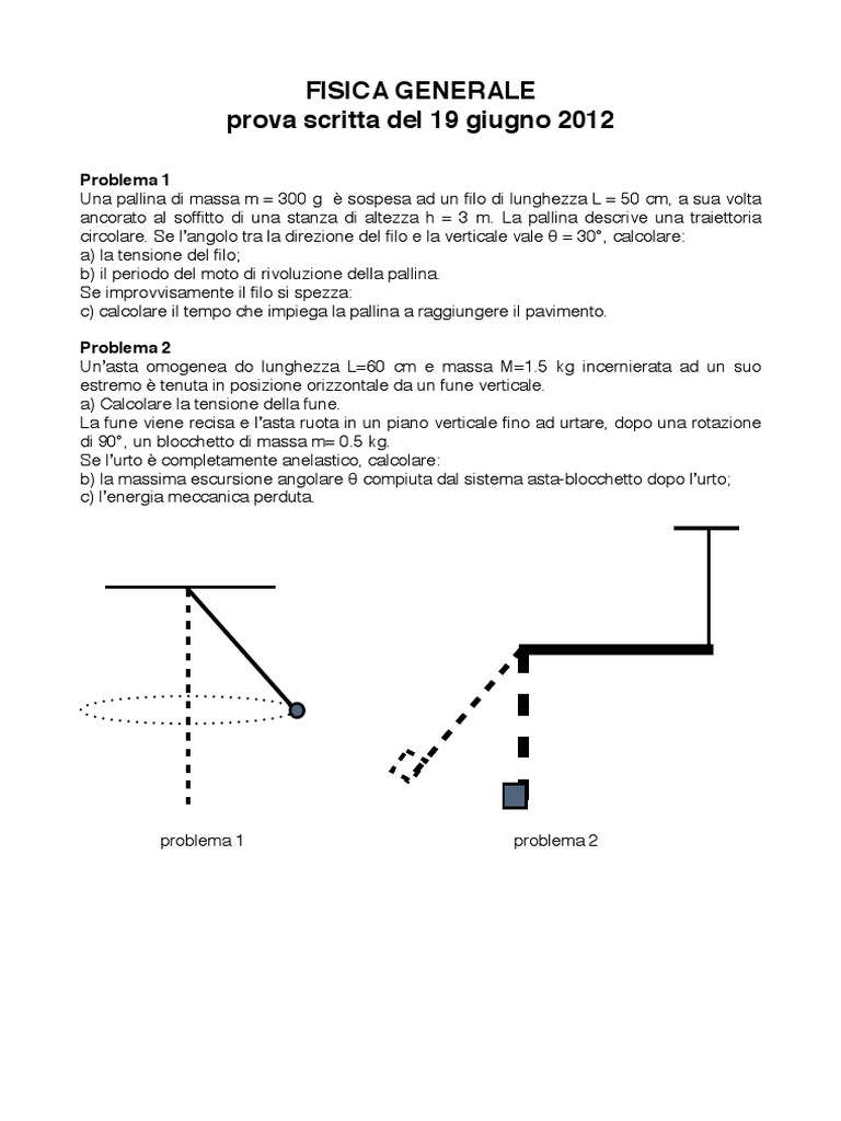 ancorato al soffitto di una stanza di altezza h = 3 m (Fig. 1). La pallina descrive una