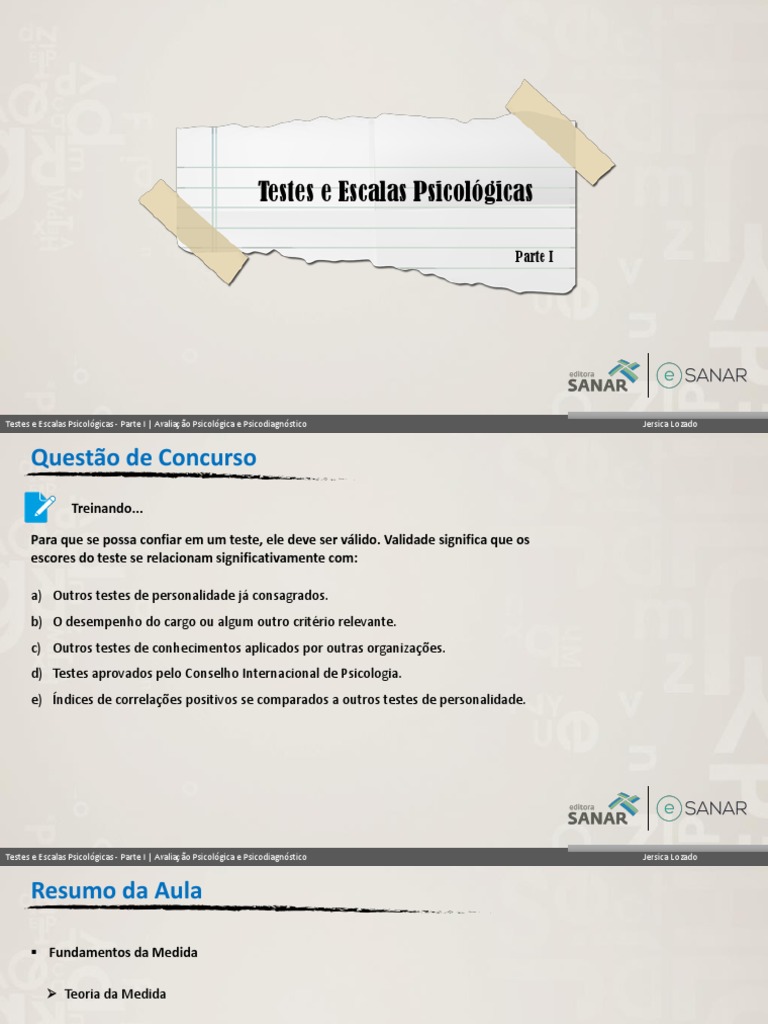 Testes e Escalas Psicológicas - Parte I | Avaliação Psicológica e Psicodiagnóstico Jersica Lozado