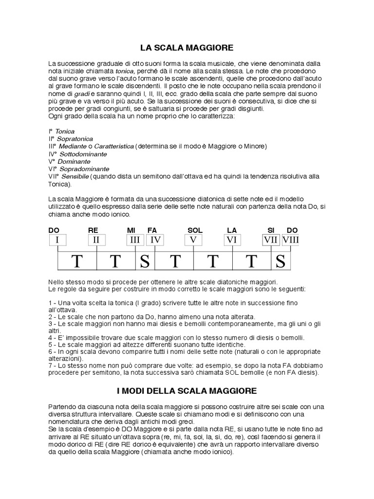 al grave formano le scale discendenti. Il posto che le note occupano nella scala prendono il