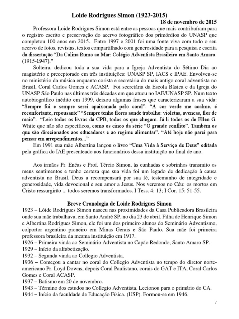 e Albertina Rodrigues Simon, ele foi um dos primeiro alunos do Seminário Adventismo,