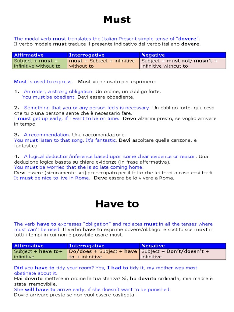 Come puoi osservare, le differenze fra le forme presenti (must, have to) sono a volte