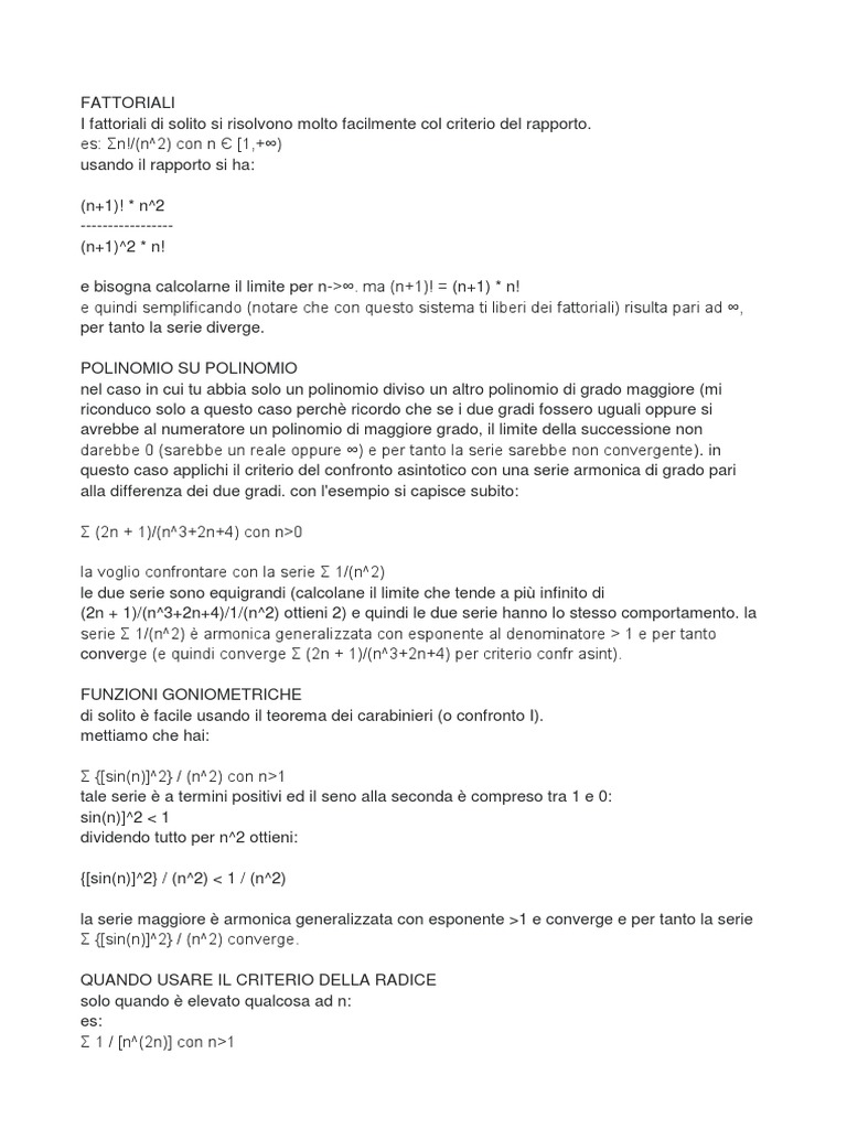 NB3: ricorda che c'è anche il criterio di McLaurin (o dell'integrale) e potrebbe essere utile