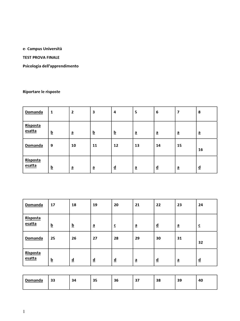 Riportare le risposte