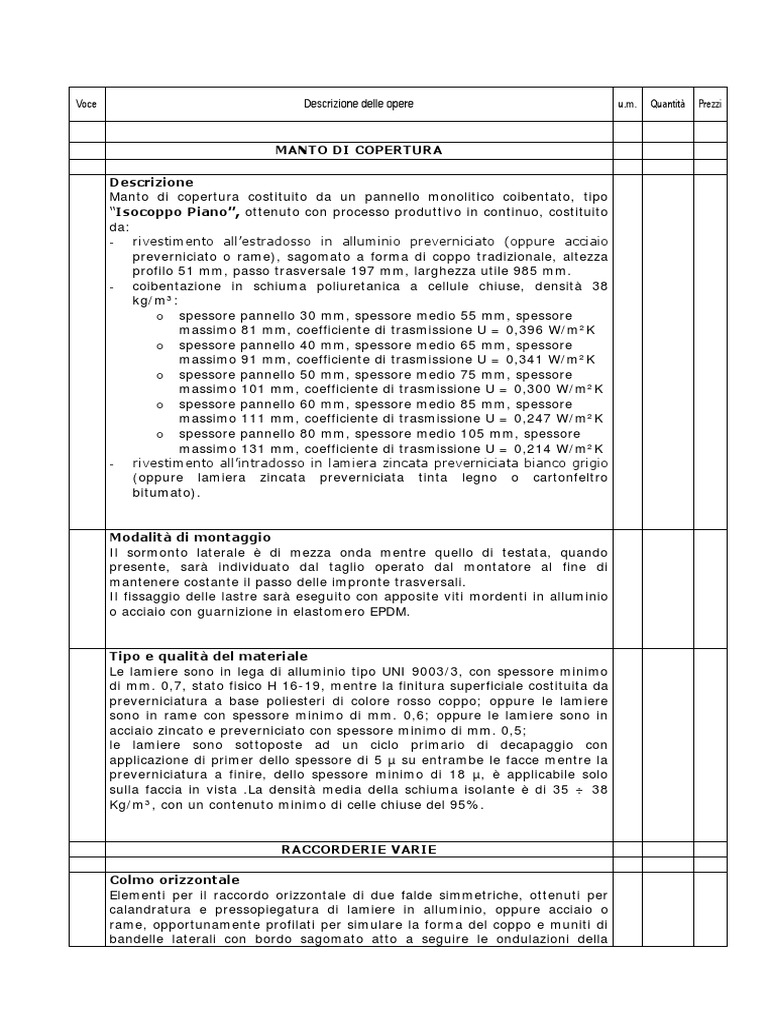 Voce Descrizione delle opere u.m. Quantità Prezzi
