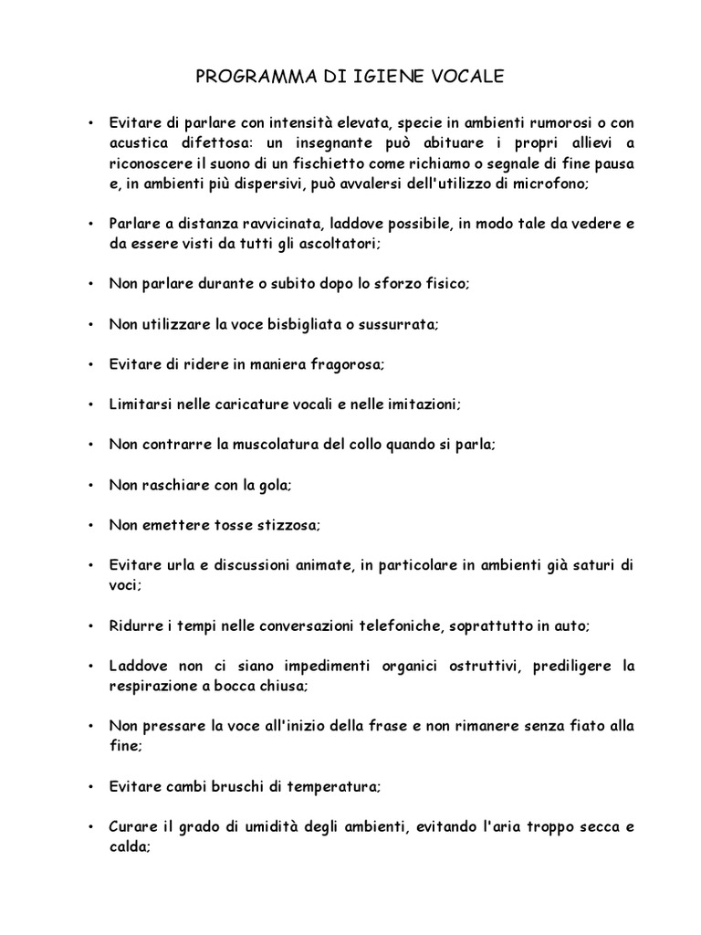 PROGRAMMA DI IGIENE VOCALE