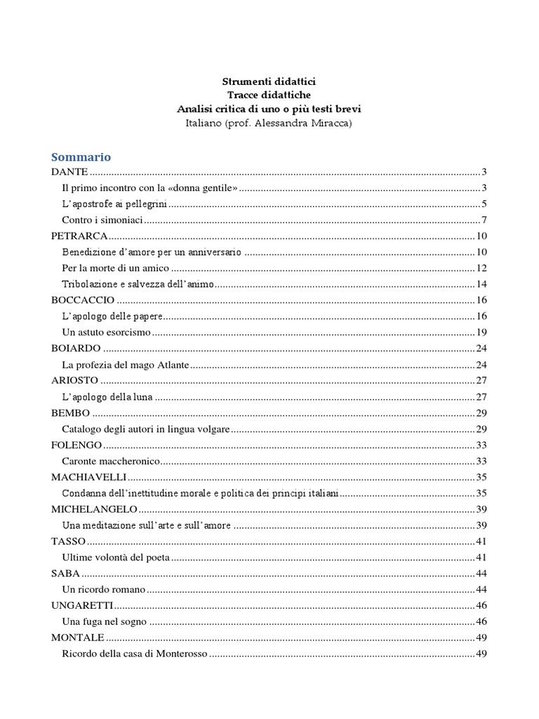 un testo in prosa in cui l’autore li scompone per indicarne i temi. Qual è, a tuo parere, il