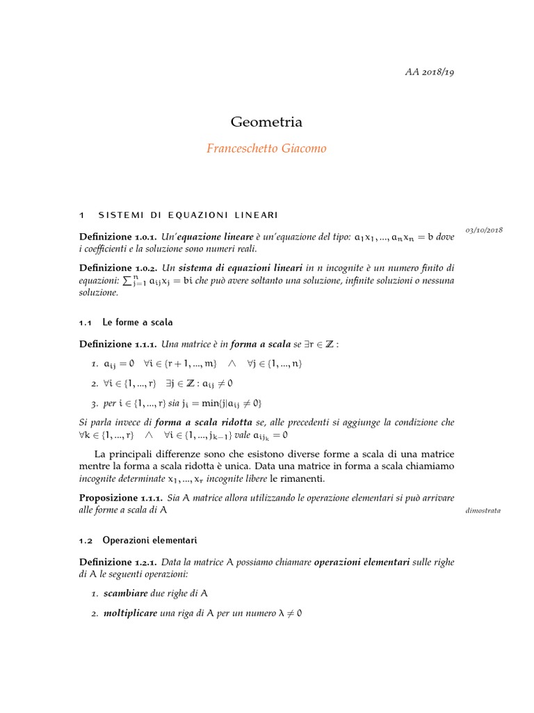 Definizione 1.0.2. Un sistema di equazioni lineari in n incognite è un numero finito di