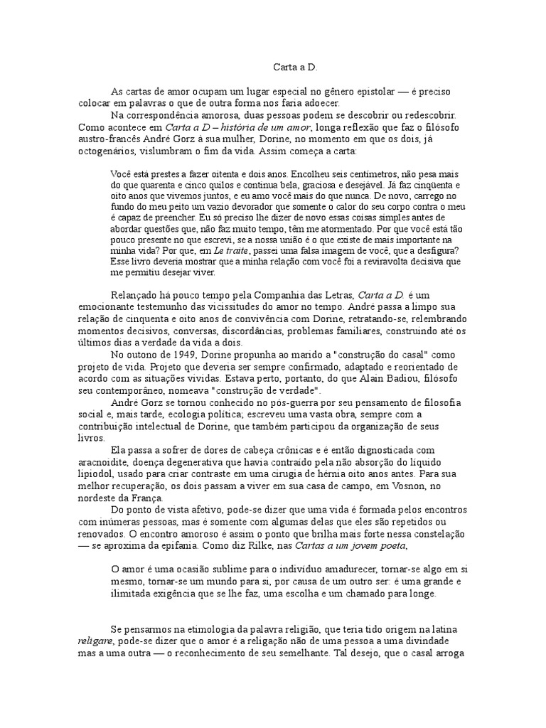 Relançado há pouco tempo pela Companhia das Letras, Carta a D. é um