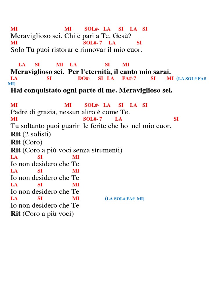 Meraviglioso sei. Per l'eternità, il canto mio sarai.