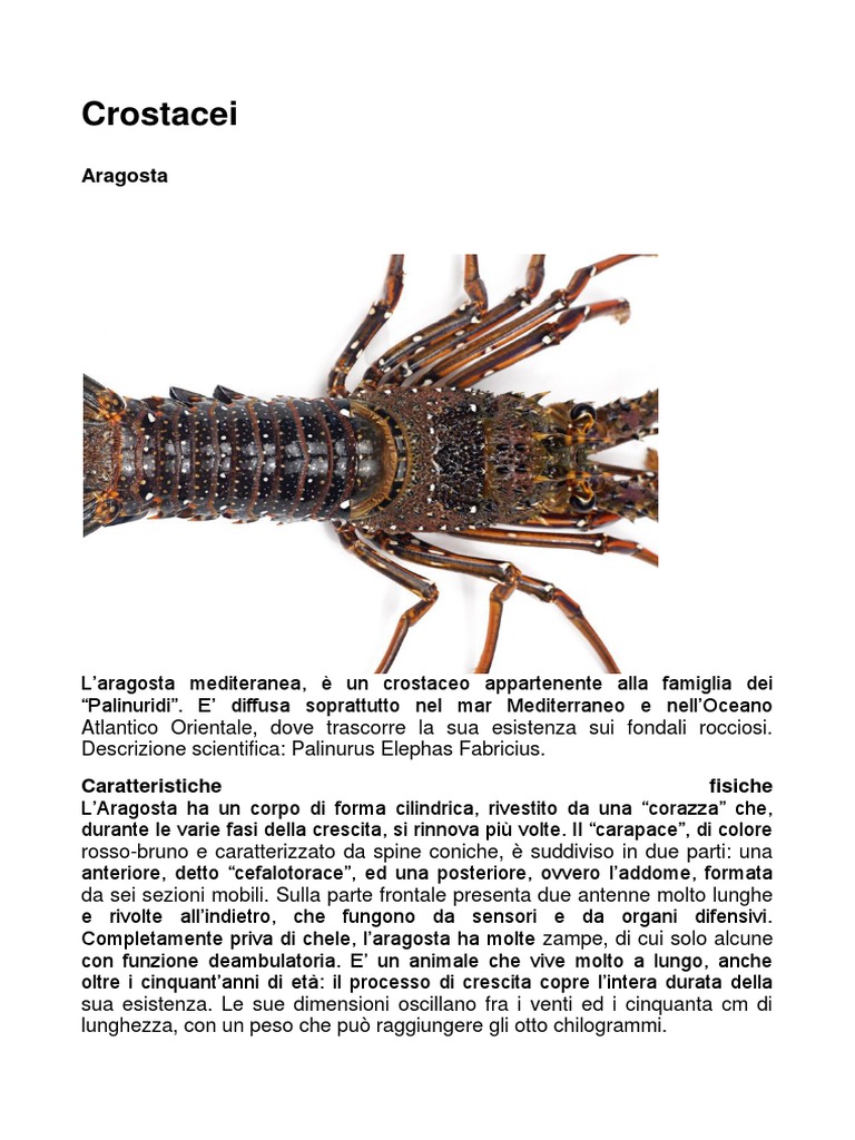 L’Aragosta ha un corpo di forma cilindrica, rivestito da una “corazza” che,