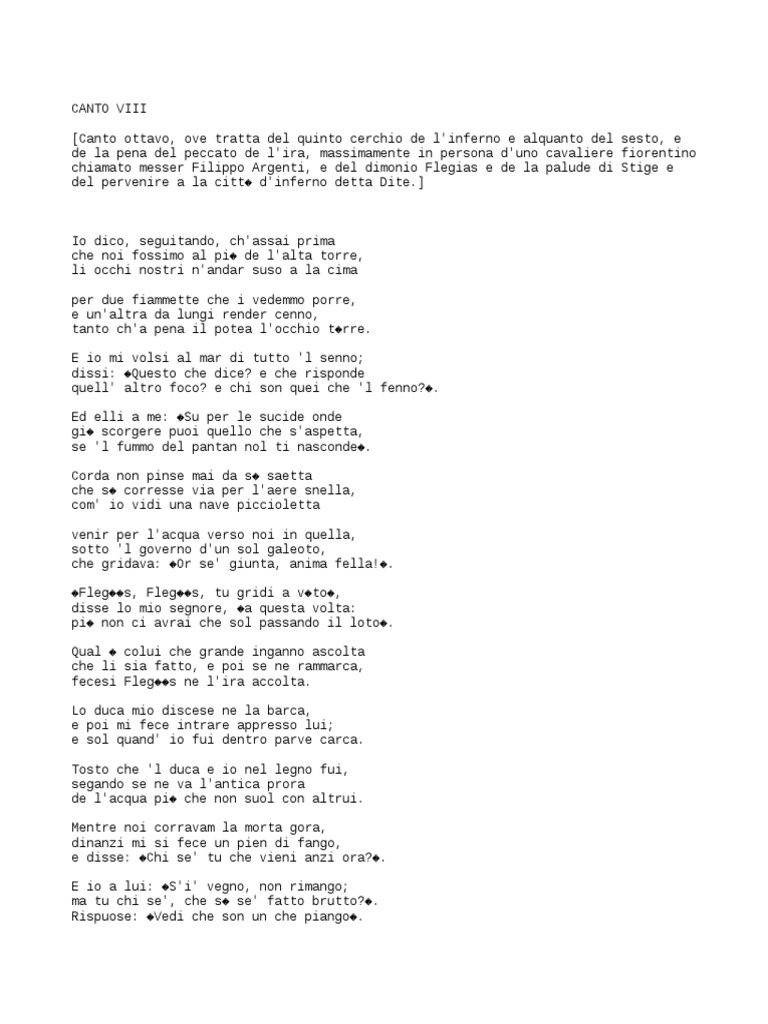 [Canto ottavo, ove tratta del quinto cerchio de l'inferno e alquanto del sesto, e