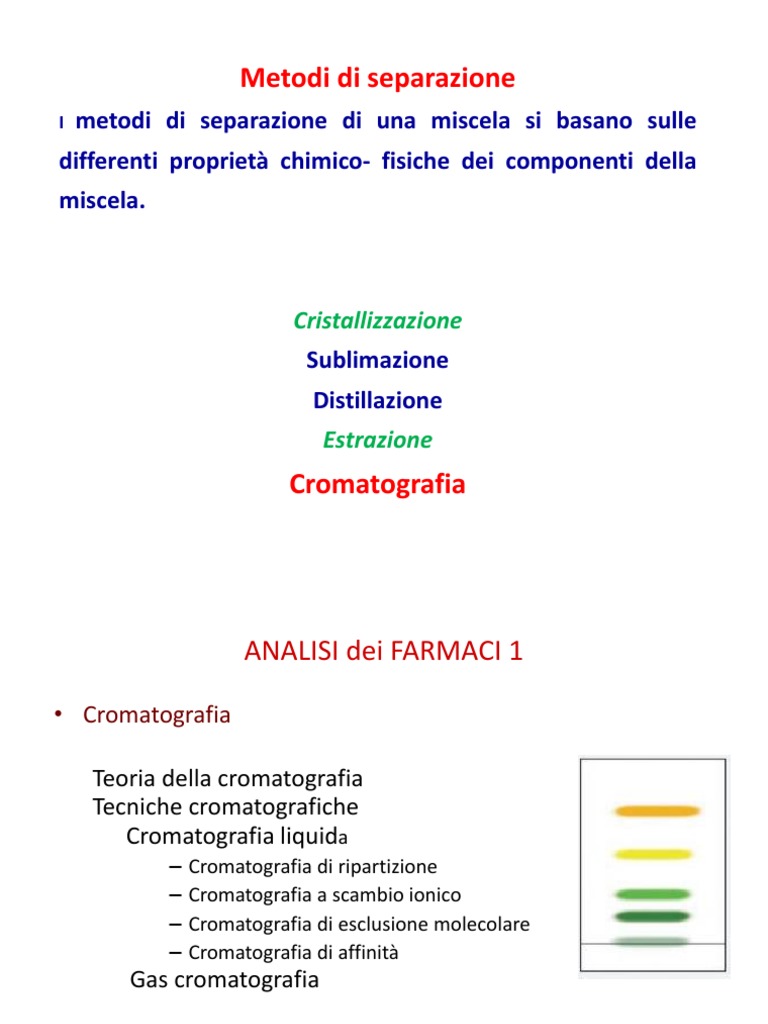 I metodi cromatografici sfruttano le diverse affinità delle