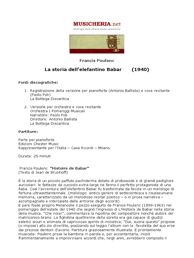 • Ascolto dal vivo della versione per pianoforte di Poulenc.