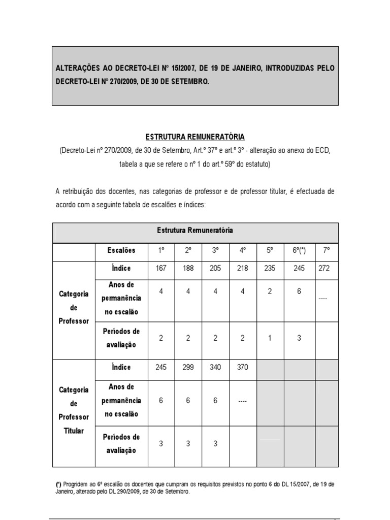 (*) Progridem ao 6º escalão os docentes que cumpram os requisitos previstos no ponto 6 do DL 15/2007, de 19 de