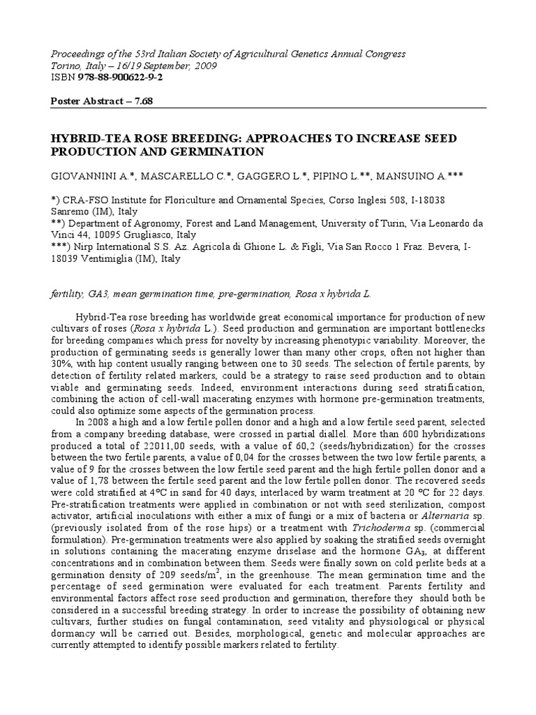 cultivars of roses (Rosa x hybrida L.). Seed production and germination are important bottlenecks