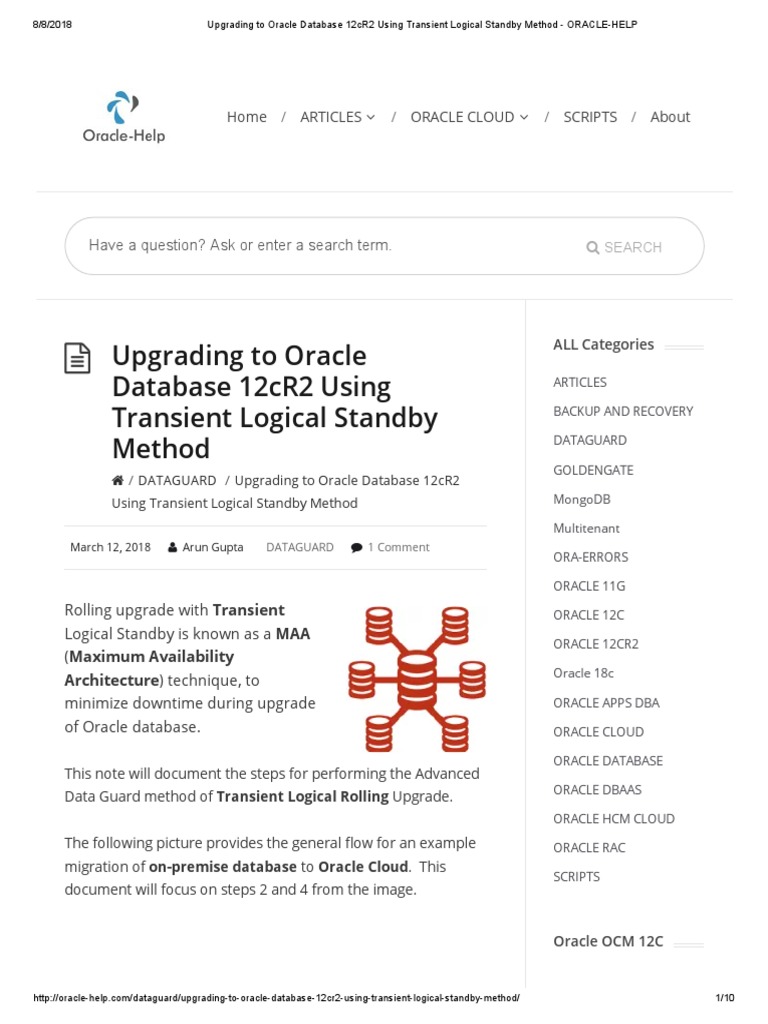 8/8/2018 Upgrading to Oracle Database 12cR2 Using Transient Logical Standby Method - ORACLE-HELP