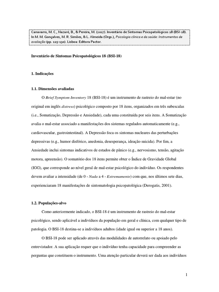 (Andreu et al., 2008), o BSI-18 pode constituir também uma medida de monitorização e de